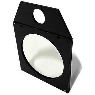 An F/2 off-axis parabolic mirror assembly with protected aluminum mirror coating. This assembly is intended to attach to Sciencetech's LH-S lamp houses (also works with obsolete 201C-100 lamp houses). The assembly includes a kinematic three point adjuster to optimize optical alignment. A standard hole pattern on the input and output ends of the assembly can be used to mount this optical component to custom or third party systems with appropriate bracketing.