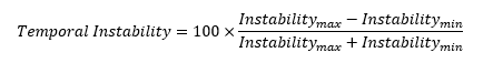 The measure of temporal instability is given as a percentage, and is calculated by the following formula: