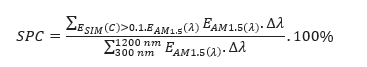 SPC is a measure of what proportion of the spectrum contains more than 10% of the reference irradiance at a given wavelength. It is calculated as follows: