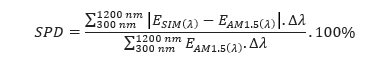 SPD measures the degree to which a solar simulator’s spectrum deviates from the reference spectrum – a sum of the errors (represented in