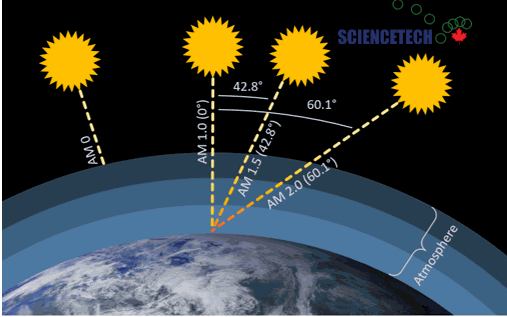 The spectrum at sea level, after travelling directly through the Earth’s atmosphere by the shortest distance possible, is defined as “AM1.0”, meaning “one atmosphere.”