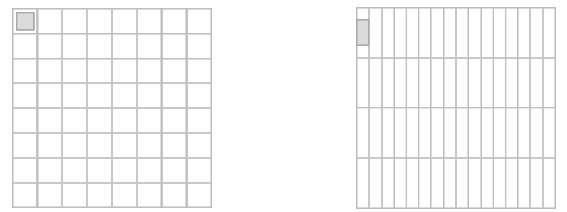 Figure 9. A sample area divided into two possible 64-test-position grids, according to ASTM E927-19. Area of all test positions (ATP) is equal to total test area divided by 64. Area of detector (dark grey) is 0.5 · ATP.