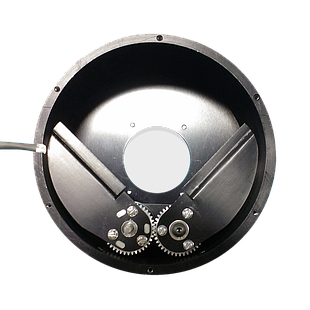 This shutter can be used with any high powered light source and can effectively block a 2" diameter beam.