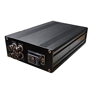 This data acquisition module features 3 analog inputs via BNC connectors. The data acquisition board is 16-bit and can measure a single channel up to 50 kS/s. An additional BNC connector for a multi-purpose digital input/output can be used to time measurements and/or send signals to external hardware such as a high speed shutter.