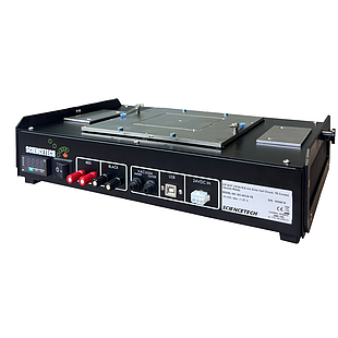 The SCC-6-TE cell chuck is an economical way of providing temperature control and electrical connection to your test cells. It has a conductive tin-plated copper base plate (gold plating available) and is compatible with all of Sciencetech's probe systems. The cell chuck is capable of vacuum hold-down (vacuum pump sold separately) and has thermoelectric cooling elements that can heat or cool your test cells from dew point to 60 ºC.